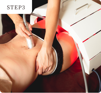 近赤外線LEDで長年蓄積された硬い脂肪を分解して溶かします。